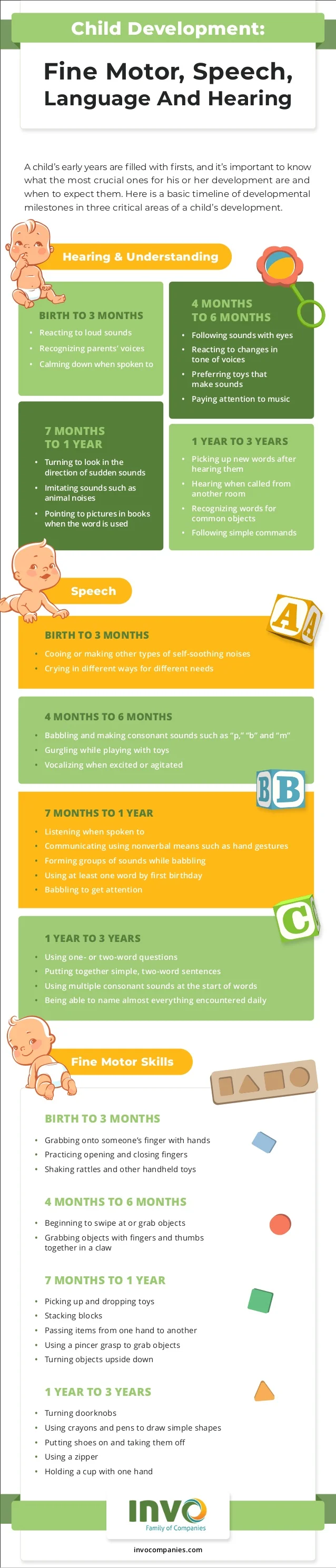 Check out this great inforgraphic provided by Invo-Progressus on Child Development: Fine Motor, Speech, Language and Hearing.